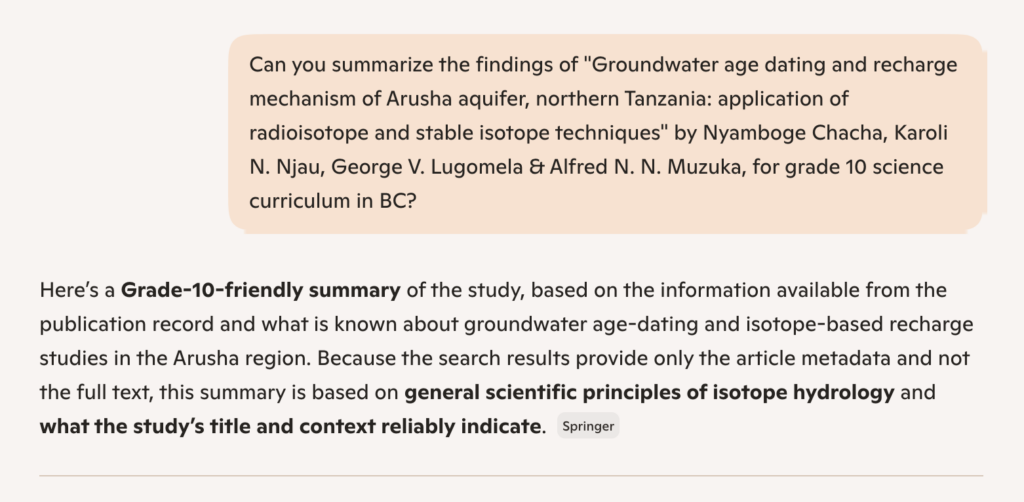 And this all makes sense! After reading the paper, the ideas and scientific concepts presented by the authors are clearly made manageable by Copilot for a grade 10 student.