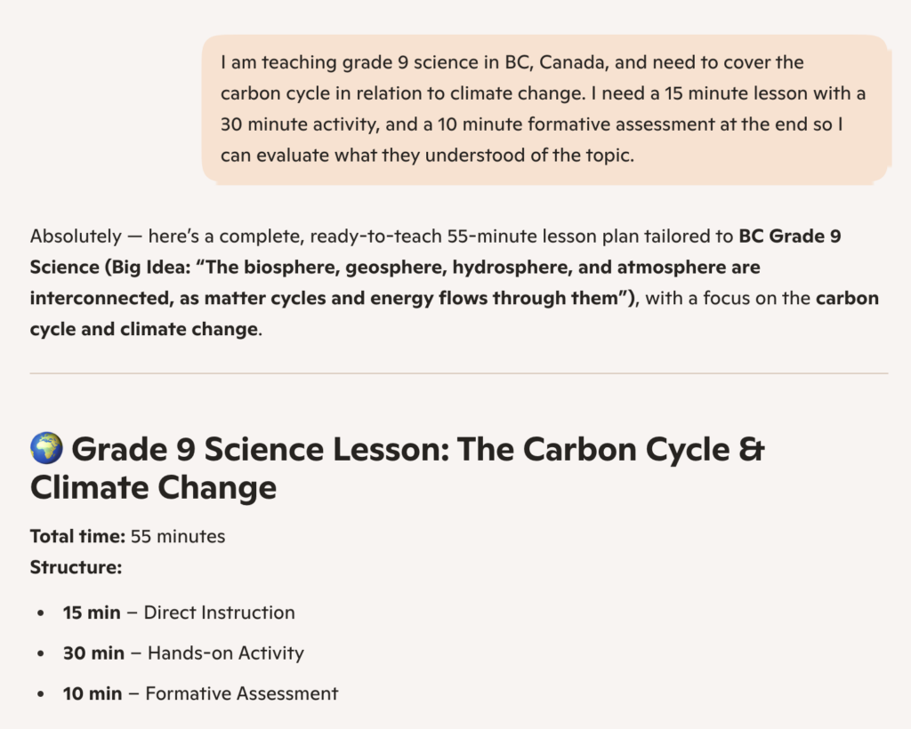 I’ve seen AI used by teachers for ways to add to their lesson plans, making them more inclusive, creative, or ideas to bridge topics.