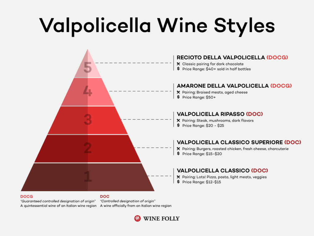 2. There are grades of valpolicella, all dependent on fermentation processes, flavours, and grape quality